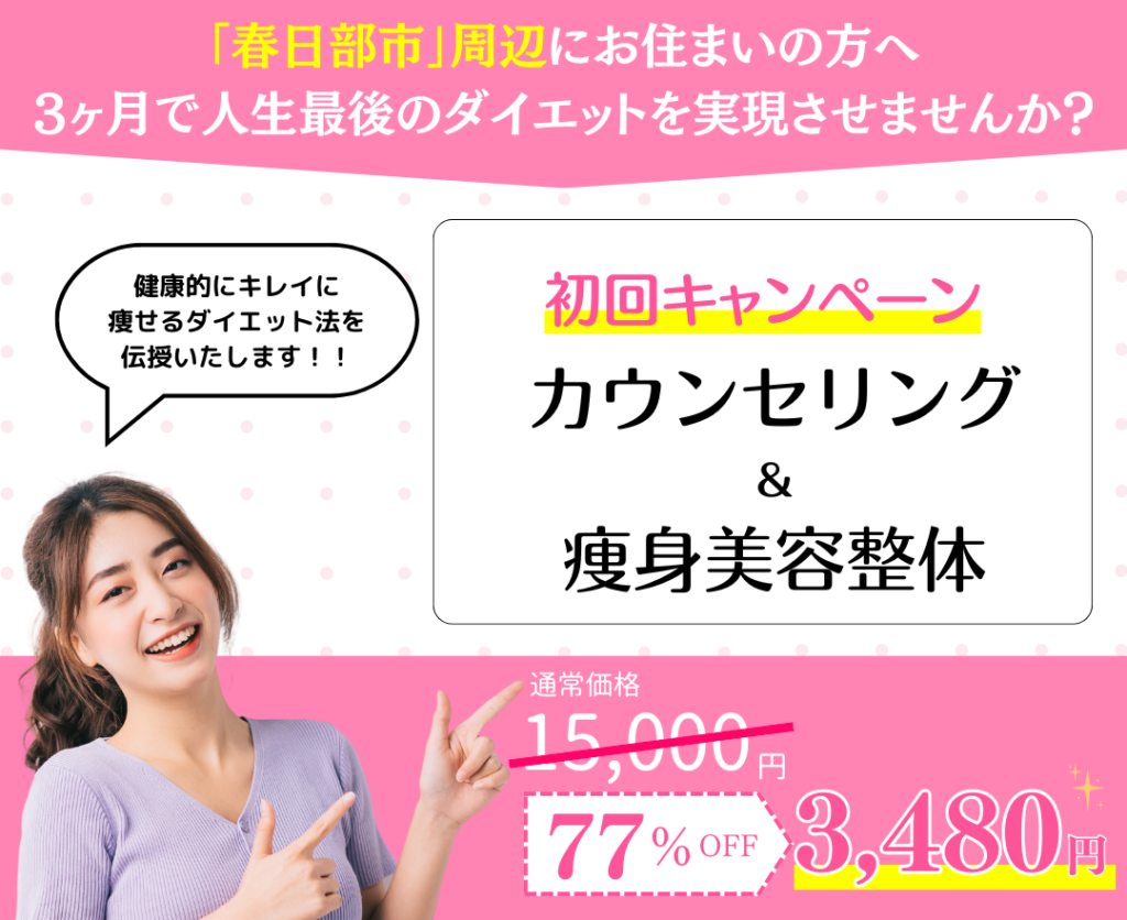 などの不安を解消して頂く為に、初回キャンペーンをしています。ただ今、予約が多数で人数限定のキャンペーンになります。予約をご希望の方はお早めにご連絡をお願いいたします。